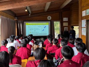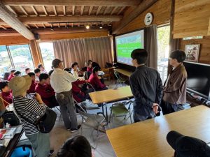 岡山一宮高校の生徒さん47名が、小田研究室が共同研究を行っている西粟倉村大茅地区を訪れ、学部生と大学院生が、10月25日に研究紹介を行いました。