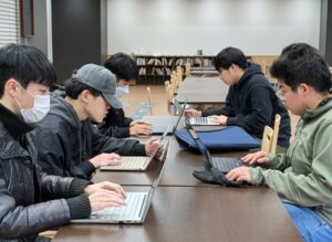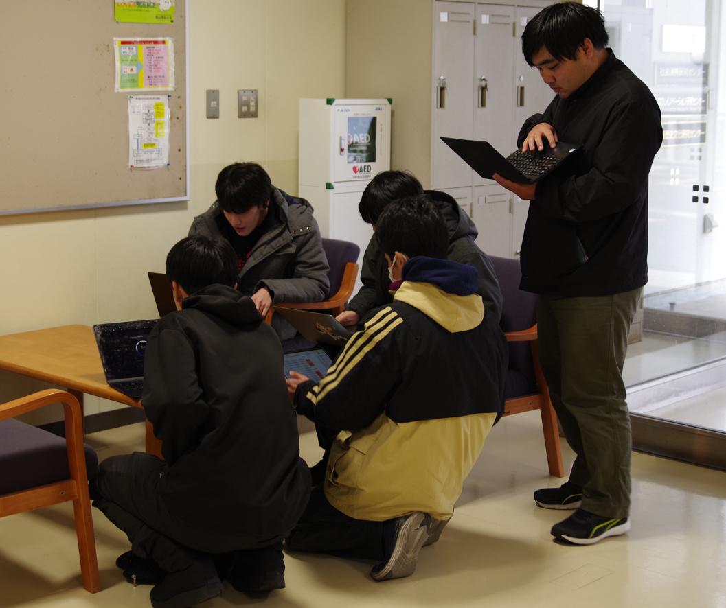 3年生対象の「コンピュータネットワーク実習」では、学生たち(と教員たち)が想定外のさまざまなトラブルを何とか乗り越え、残すところあと2回となりました。今回は、情報工学科では珍しいフィールドワークです。自分のノートPCを手に実験室を飛び出してキャンパス内のあちこちに出向き、学内Wi-Fiの状況を詳しく調査して集約しました。学生の共用スペースでは手厚くWi-Fiが整備されていることも分かってもらえたと思います。寒い中、お疲れさま!